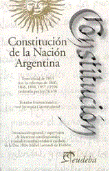 Constitución de la Nación Argentina: texto oficial de 1853 con las reformas de 1860, 1866, 1898, 1957 y 1994 ordenado por ley 24430. Tratados internacionales con Jerarquía Constitucional / Hebe Mabel, Leonardi de Herbón.–Buenos Aires : Eudeba, 2024.– 267 p. ISBN: 978-950-23-1324-5